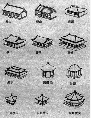 在中國(guó)木構(gòu)架建筑中,最常用的屋頂有六種:廡殿頂、歇山頂、懸山頂、硬山頂、卷棚頂、攢尖頂。